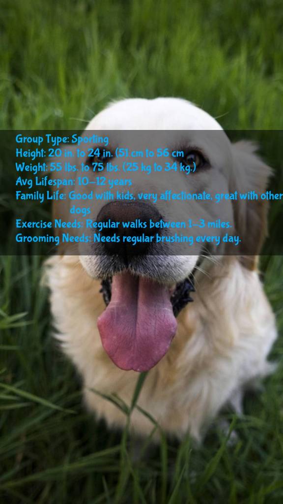 Golden Retrievers should be between 20 to 24 in. (51 to 61 cm), and they typically weigh between 55 to 75 lbs. (25 to 34 kilograms). They have “flags” on their front legs and butt and tail, which is a characteristic of all Golden Retrievers. Their coat is flat on top but becomes wavy toward the belly, and are often golden in color, though today we also breed white (called English Cream) and red as well. Some Golden Retrievers may even have a genetic trait that passes on white spots.